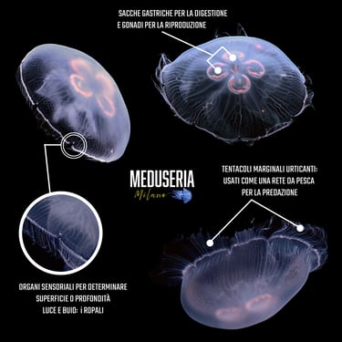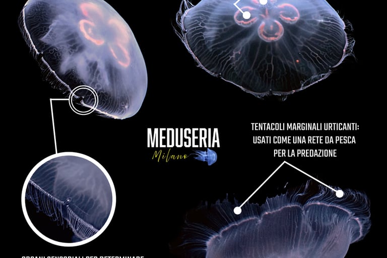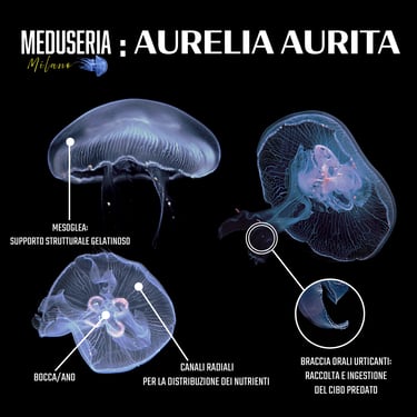 Indiscutibilmente la specie di medusa più diffusa e allevata, sia negli acquari pubblici che in quelli domestici. Combinazione vincente è stata la relativa facilità di allevamento e l'elevato numero di riproduzione in cattività. Presenti in tutto il mondo, attualmente si contano 28 specie riconosciute di Aurelia, un vero e proprio incubo tassonomico, le meduse quadrifoglio possono presentare caratteristiche fisiche diverse a seconda delle condizioni di allevamento. Sicuramente rientra nell'ambito di una specie per principianti, con una distribuzione così ampia ne esiste una specie per ogni clima. La maggior parte delle specie allevate e riprodotte oggi sono temperate e prosperano alle normali temperature domestiche. Le Aurelia possono essere allevate a una densità di esemplari più elevata nel medusario, rispetto alla maggior parte delle altre specie. La combinazione di tentacoli corti e movimenti rilassati fa sì che non si aggroviglino come potrebbero fare altre meduse. Non sono molto attivi e hanno bisogno di un piccolo aiuto per essere spinti in giro per la vasca, ma non amano i flussi eccessivamente alti. Sebbene il loro effetto pungente sia debole sugli esseri umani, le meduse quadrifoglio non vanno d'accordo con altre specie. La chiave per il successo con le Aurelia Aurita risiede principalmente nel flusso delicato e nella qualità del cibo, per il resto si abituano molto facilmente a valori non del tutto precisi, basta dargli tempo e non spostarsi eccessivamente lontano dalle loro richieste. I segnali di benessere per questo animale sono i piccoli tentacoli attorno l'ombrello belli estesi e un nuoto costante, scorrendo troverai qualche video.